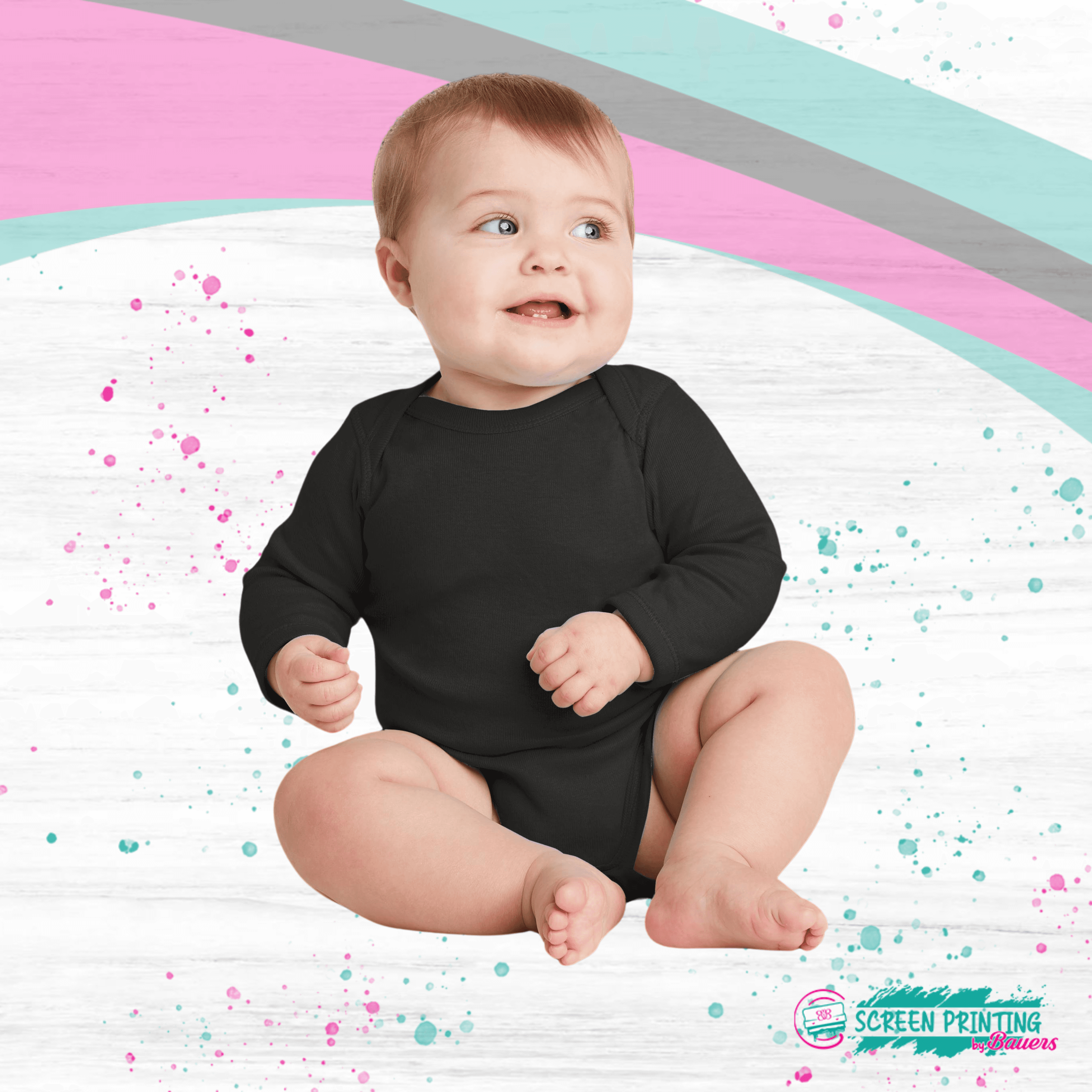 For infant apparel, we offer t-shirts and onesies! Newborn – 18 months. (24 months/2T is under the toddler section.)